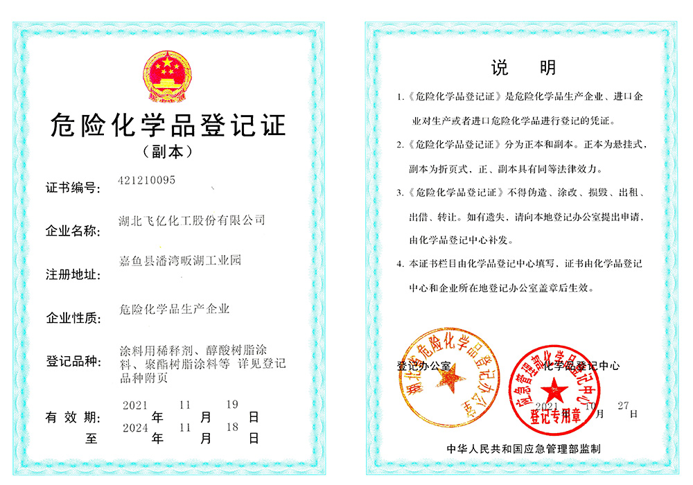 湖北飛億化工股份有限公司成立于2005年,專業從事各種油漆涂料稀釋劑的生產批發,經過公司全體員工的多年拼搏與努力,本著客戶至上、誠信至上、質量至上的三上原則和高素質、高效率、高品質的三高理念,公司在木器稀釋劑行業中取得了不菲的成績。在公司以批發為主的行銷原則下,在湖北、湖南、浙江、山東、山西、陜西、江西、貴州、廣西、廣東、安徽、河南、河北、江蘇、甘肅、青海、西藏、新疆等地建立了良好和健康的銷售網絡。湖北飛億化工股份有限公司以人為本、倡導學習。經過多年的凝聚和歷練,公司擁有豐富實踐經驗的技術人員和銷售、生產的團隊,不斷研發適合市場和客戶的高質量產品。并努力爭取各項產品和服務達到客戶滿意。為滿足市場和客戶要求,湖北飛億化工股份有限公司于2013年投資興建了占地30000平方的集生產、檢測、庫存于一體的現代化生產基地,公司熱忱歡迎有志之士與我們共同成長、共同壯大和共同發展。